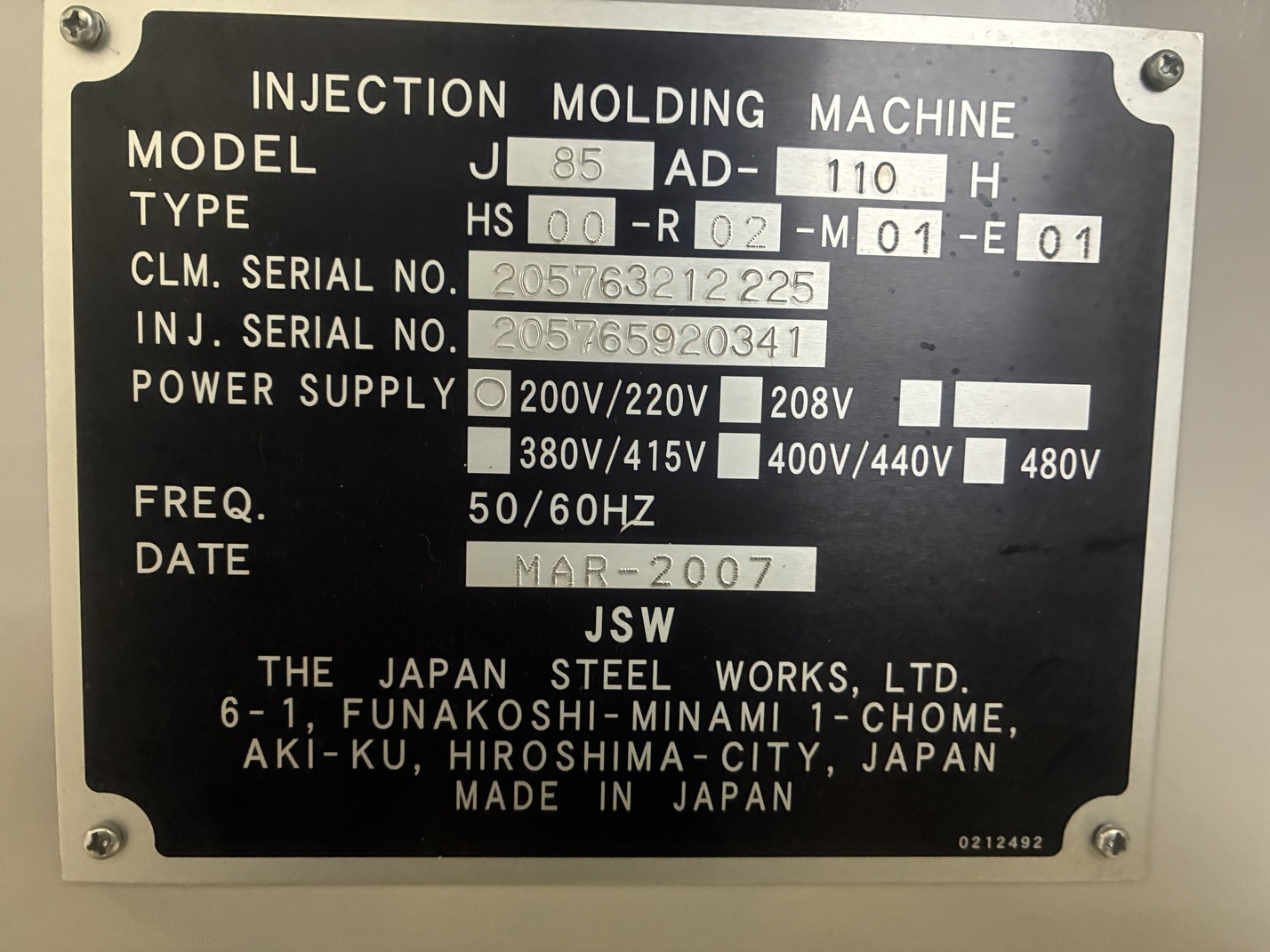J85AD-110H JSW 110ton 電動機 2007year
